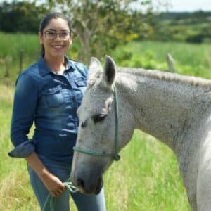 Médica veterinária dedicada à neonatologia e pediatria equina, ela vem construindo sua trajetória com ênfase no cuidado das éguas gestantes e no nascimento de potros saudáveis. Atua diretamente no campo, realizando o acompanhamento de plantéis reprodutivos.
